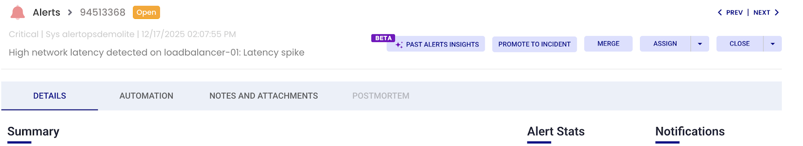 Previously, all incoming signals — from monitoring tools, systems, or manual sources — were treated as alerts. While powerful, this made it difficult to formally designate critical incidents from routine alerts. Now, Incidents elevate alert severity and visibility, aligning with formal response protocols.