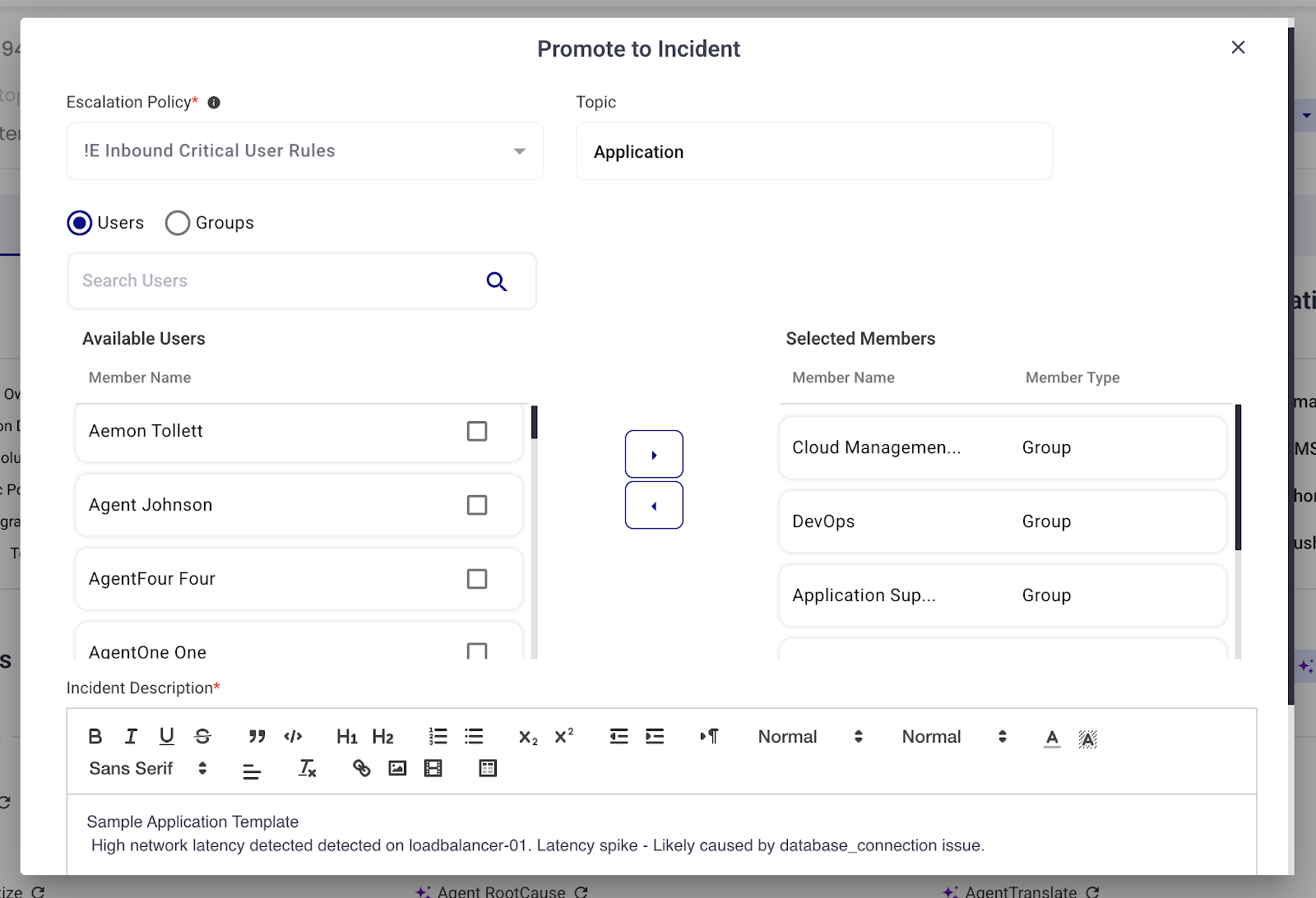 This manual step enforces accountability and ensures only truly impactful issues receive full incident treatment — including major incident workflows, escalations, and stakeholder notifications.