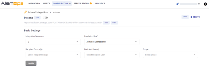 - Make a note of the API URL, which will be used in Instana, so it calls a HTTP POST request to this URL with the body in JSON format containing the alert specific information. Alerts will be recorded in the ‘Inbound Log’ section table. AlertOps automatically creates an alert when the state contains “OPEN” (as per the definition in the screenshot above). The incident will also be closed automatically when the status ‘CLOSED’ is received.