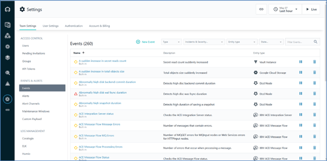 Events need to be created in Instana (or rather an inbuilt event can be picked from Instana) so that they can be attached to an Alert, which is further attached to an Alert Channel Webhook to send out event payload to AlertOps. An example is to create an event when CPU load goes above a value. There are loads of pre-built events and other ways you can define events for your monitoring environment.