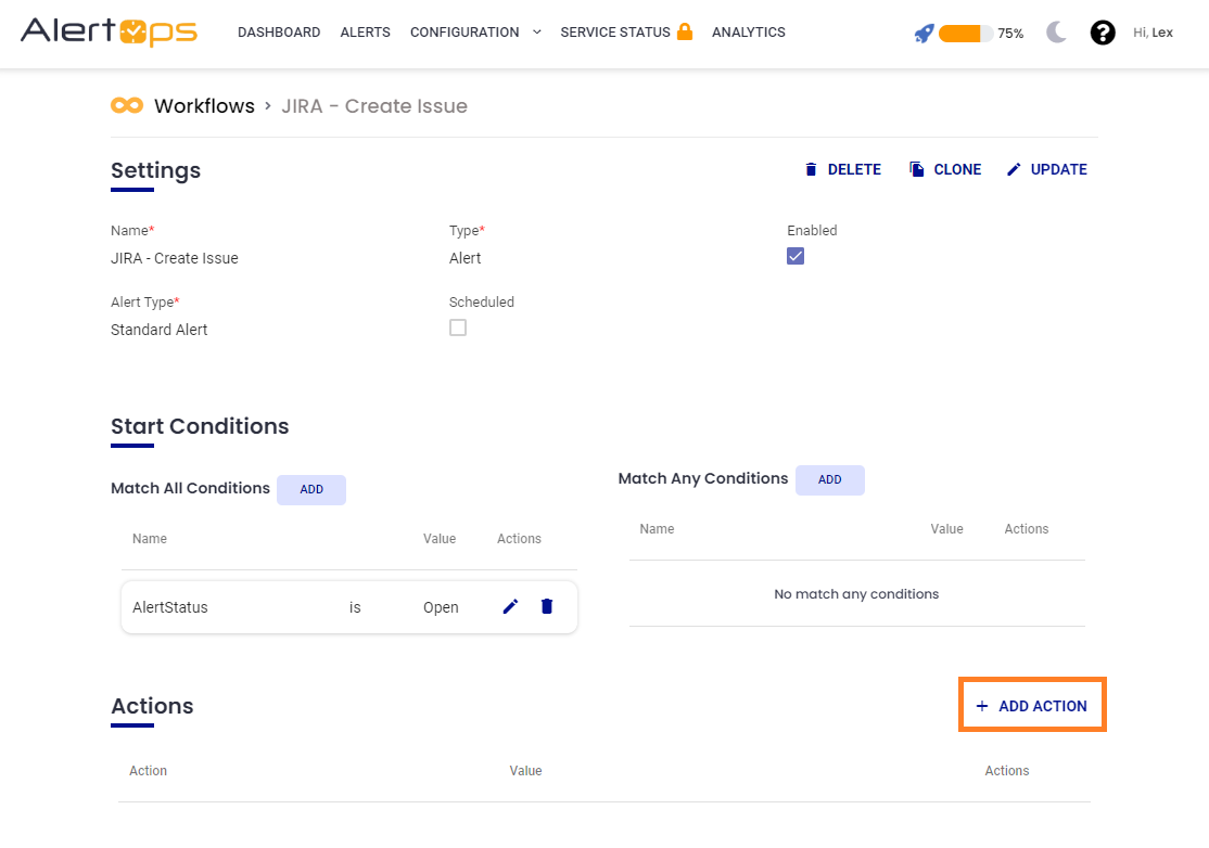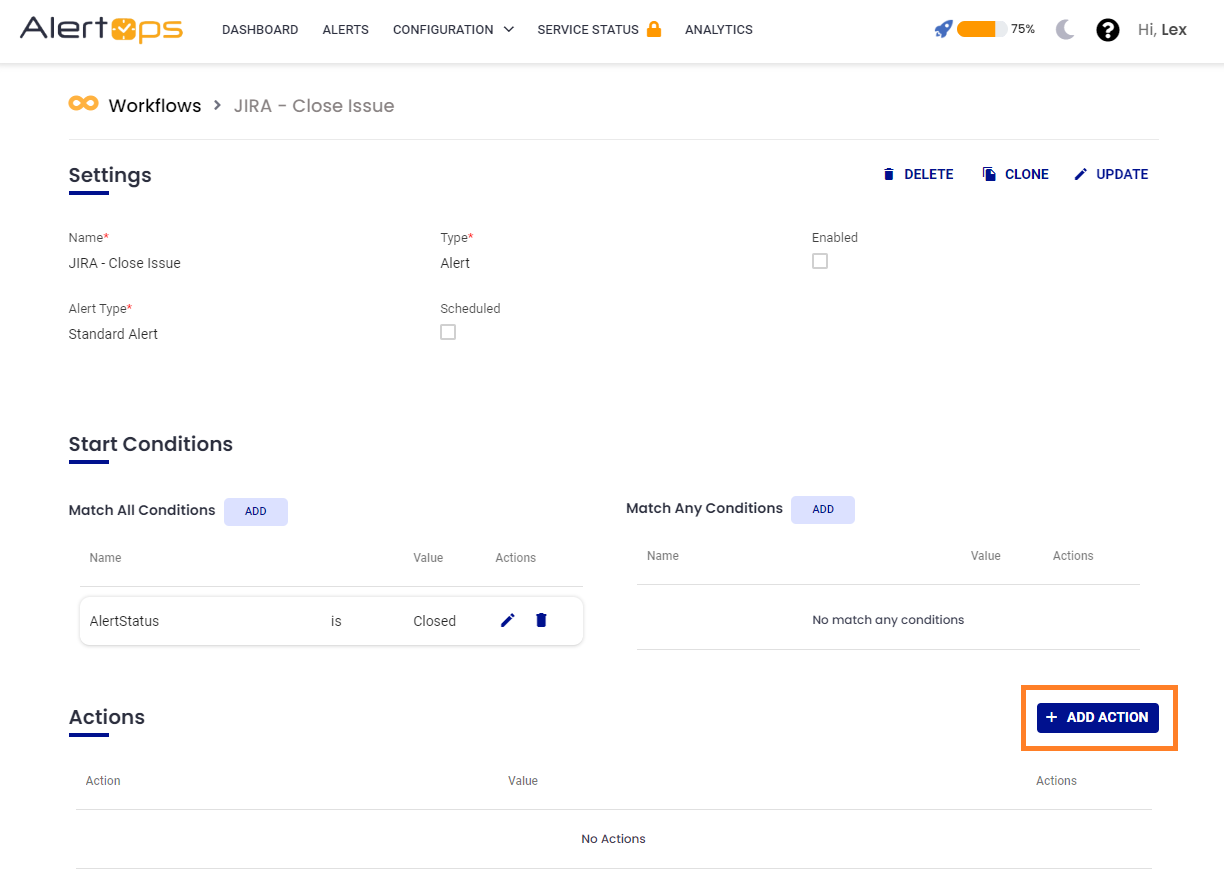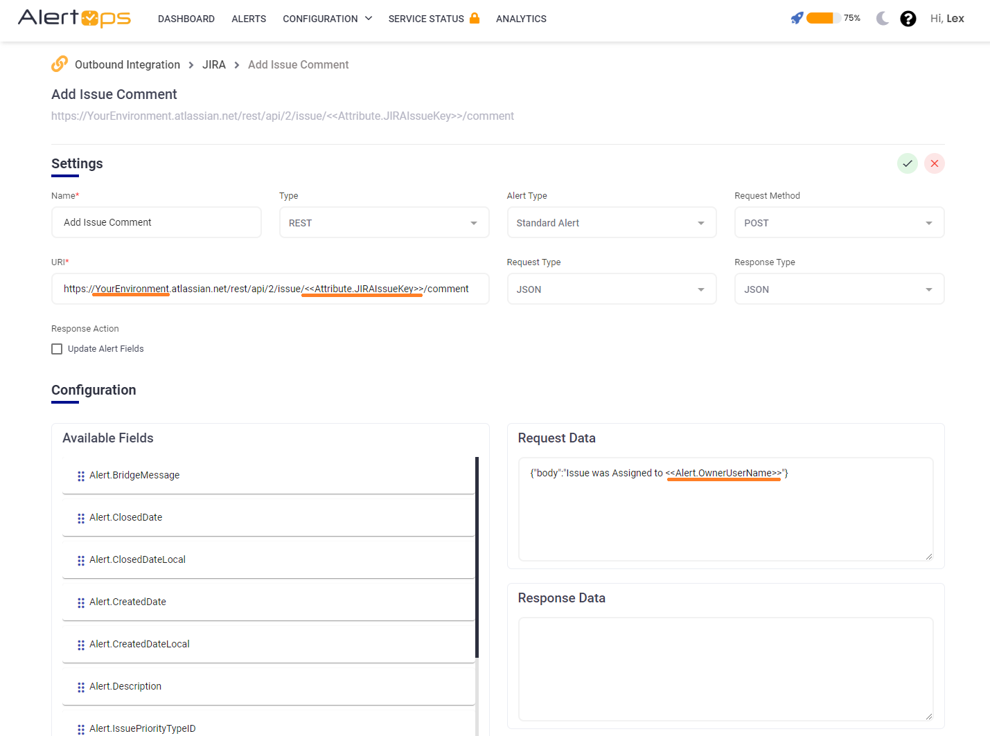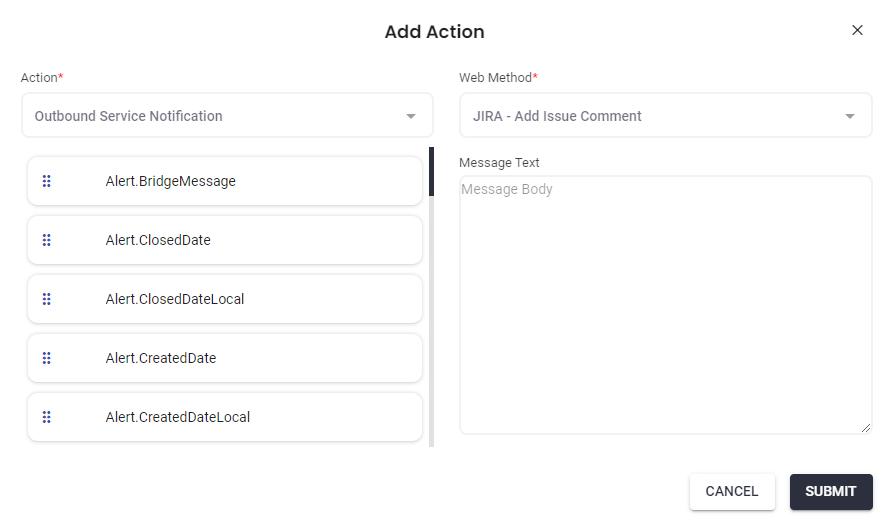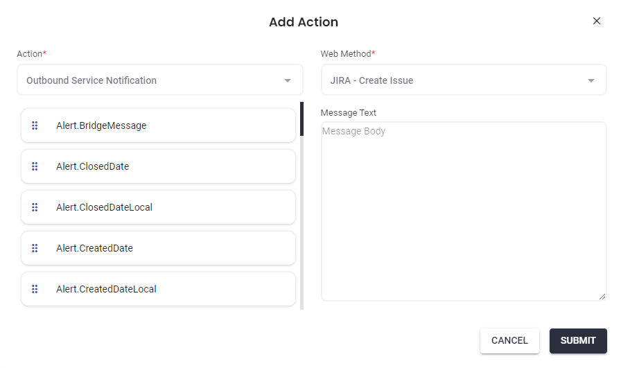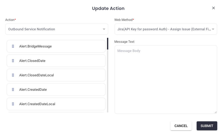 The final configuration we need to make to this integration is to add JIRA values to open, close, or update an alert.