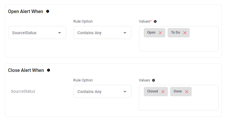 - Issues coming from JIRA have a SourceStatus that corresponds to transition titles. This means we need to add transition titles as additional values in the alert rules.These are client-environment specific, so you need to customize these accordingly. Note that these values are case sensitive and must match the JIRA transition names exactly. In our example we will add the generic To Do and Done JIRA labels: