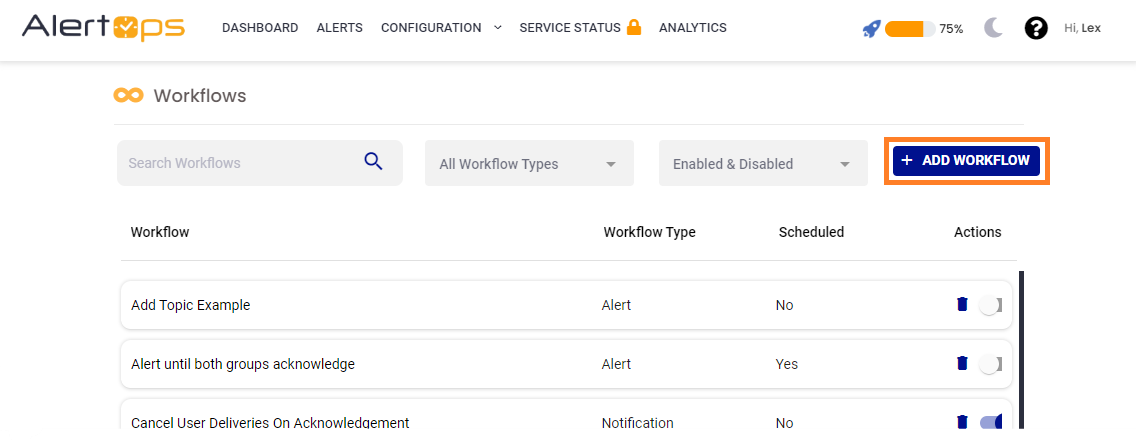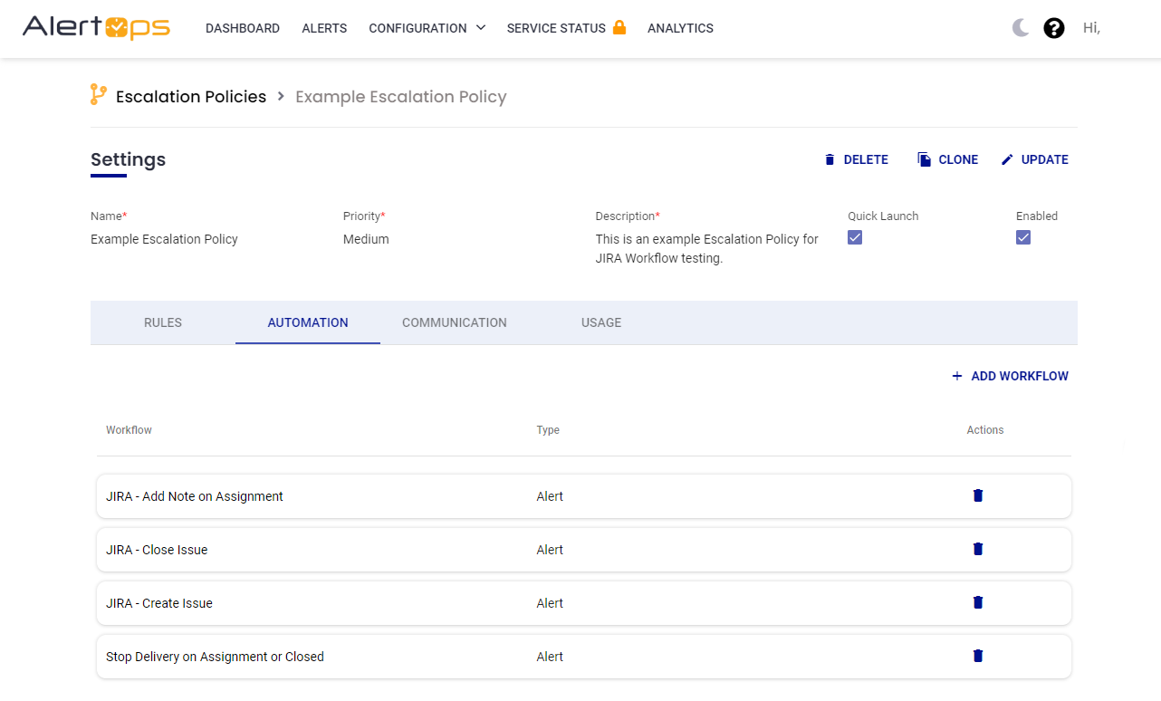 The next step for workflows is to associate them with an Escalation Policy from the Automation tab.