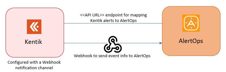At a high level this is how the flow looks like, you define an API integration in the AlertOps platform by defining settings like Integration Name, Escalation rules, recipient users/groups. Once an integration is defined, a unique API URL is generated. This acts as webhook or the gateway through which notifications from Kentik reach AlertOps and thus an incident/alert is created correspondingly. The API can be defined with various settings like URL mappings, filters, escalations etc. as required. Kentik has to be defined with a webhook notification channel and that has to be attached to a monitor.