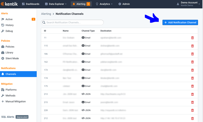 - In your Kentik portal, you can configure a webhook notification channel while setting up a monitor. under 'Configure Notifications' or you can set it up under Alerting > Notifications > Channels