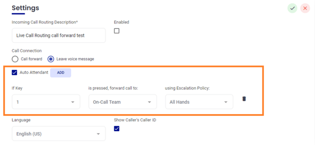- Check Show Caller ID to see a caller ID when receiving a call. Uncheck to disable Caller ID. When disabled, the Routing Number will be displayed in the Caller ID, allowing for easy identification by team members.