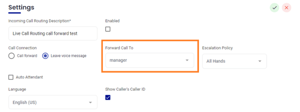 - For Call Connection, toggle between Call Forward or Leave Voice Message.