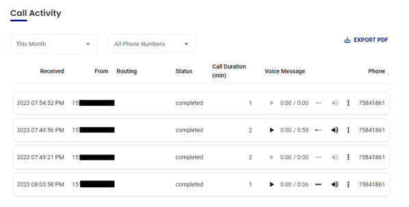 - Scroll down to the Call Activity Section to view call activity by date by selecting dates using the dropdown menus.