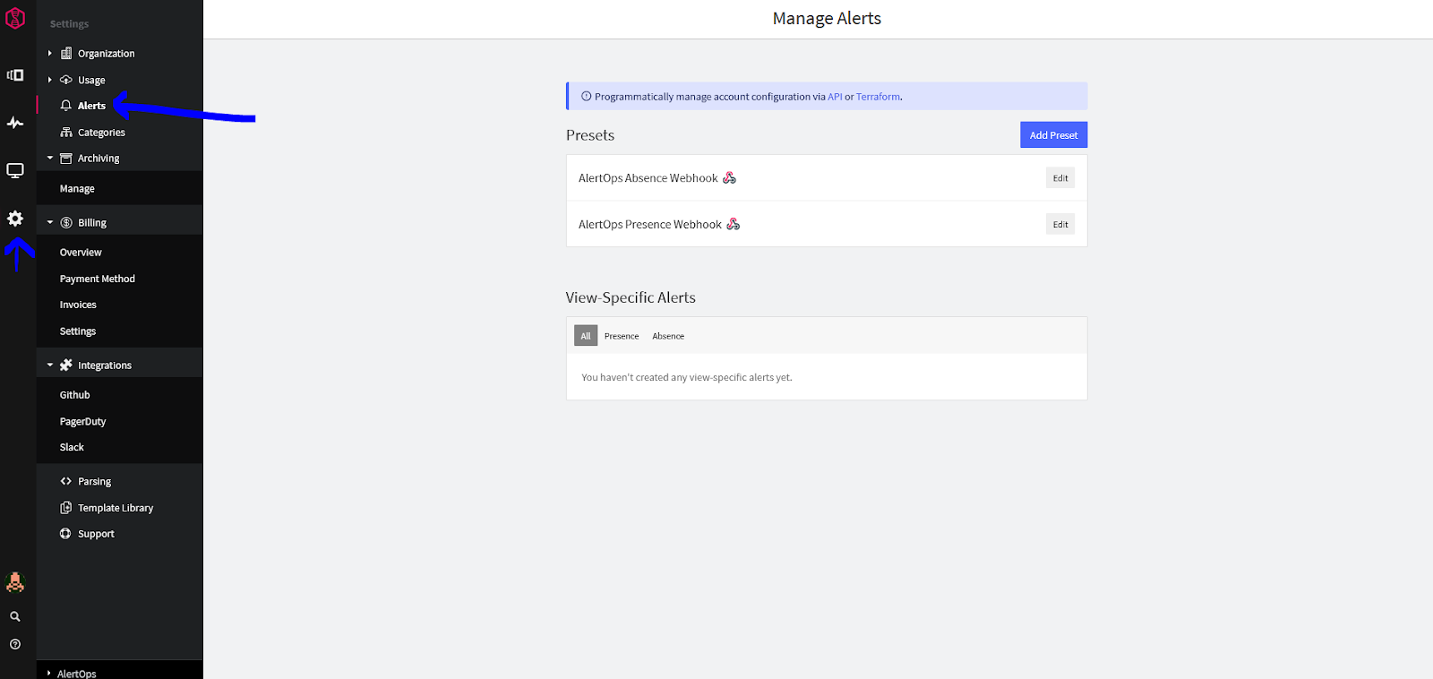 - Select Alerts.