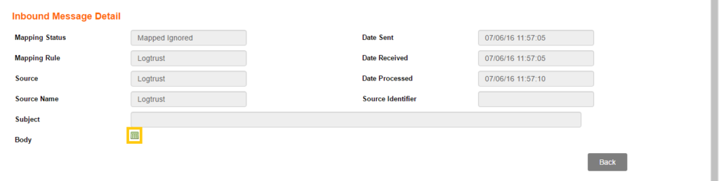 Step 7: After you have created the subscription in LogTrust, LogTrust will send a message to AlertOps. You will find this message in the Inbound Messages table. In the message details, you will see the code field.
