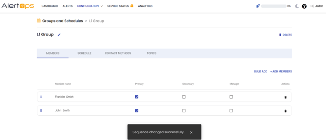 The sequence in which members of a fixed schedule will follow the order of Primaries being notified first, followed by secondaries, then managers. However, if you have multiple group members of the same role, the Sequence determines the order. This can be accessed from the group's main page.