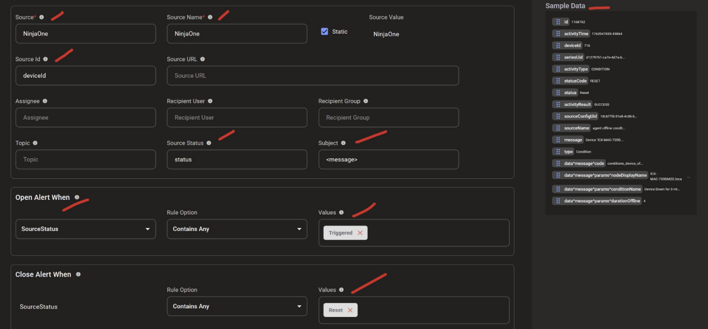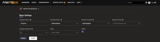 Once configured, any alert generated by NinjaOne will be sent to AlertOps for incident management.