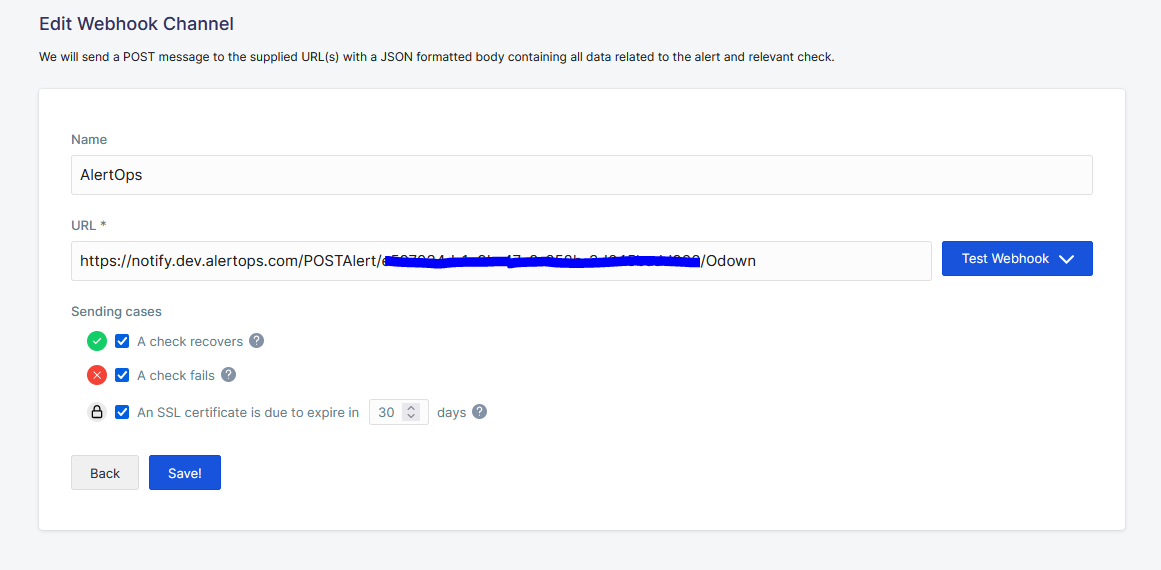 Thats it! You have configured a webhook alert channel. Any alert will be sent to AlertOps for incident management.