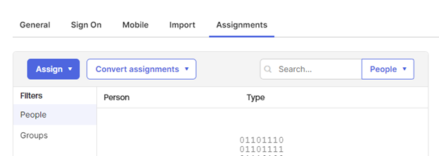 - Expand the Assignments Tab, and click Assign to add users or groups to the application.