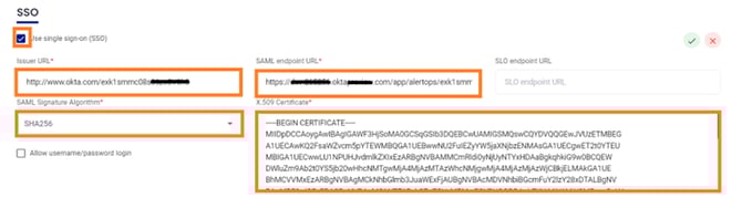 - SAML endpoint URL: Paste Sign on URL copied from Okta.