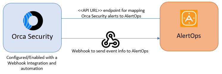 At a high level this is how the flow looks like, you define an API integration in the AlertOps platform by defining settings like Integration Name, Escalation rules, recipient users/groups. Once an integration is defined, a unique API URL is generated. This acts as webhook or the gateway through which notifications from Orca Security reach AlertOps and thus an incident/alert is created correspondingly. The API can be defined with various settings like URL mappings, filters, escalations etc. as required. Orca Security has to be configured with a webhook, and the webhook must be attached to an automation.