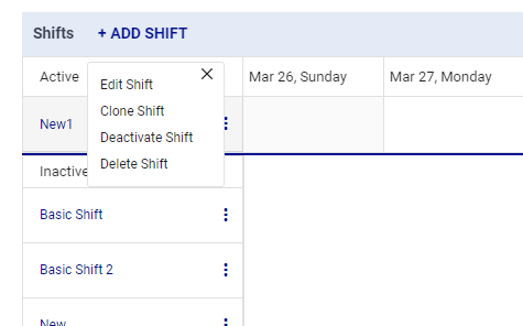 - Click the three-point menu to the right of the shift name and select Clone Shift.