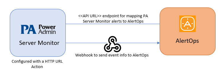 At a high level this is how the flow looks like, you define an API integration in the AlertOps platform by defining settings like Integration Name, Escalation rules, recipient users/groups. Once an integration is defined, a unique API URL is generated. This acts as webhook or the gateway through which notifications from PA Server Monitor reach AlertOps and thus an incident/alert is created correspondingly. The API can be defined with various settings like URL mappings, filters, escalations etc. as required. PA Server Monitor has to be configured with a HTTP URL Action and that has to be added to a monitor.