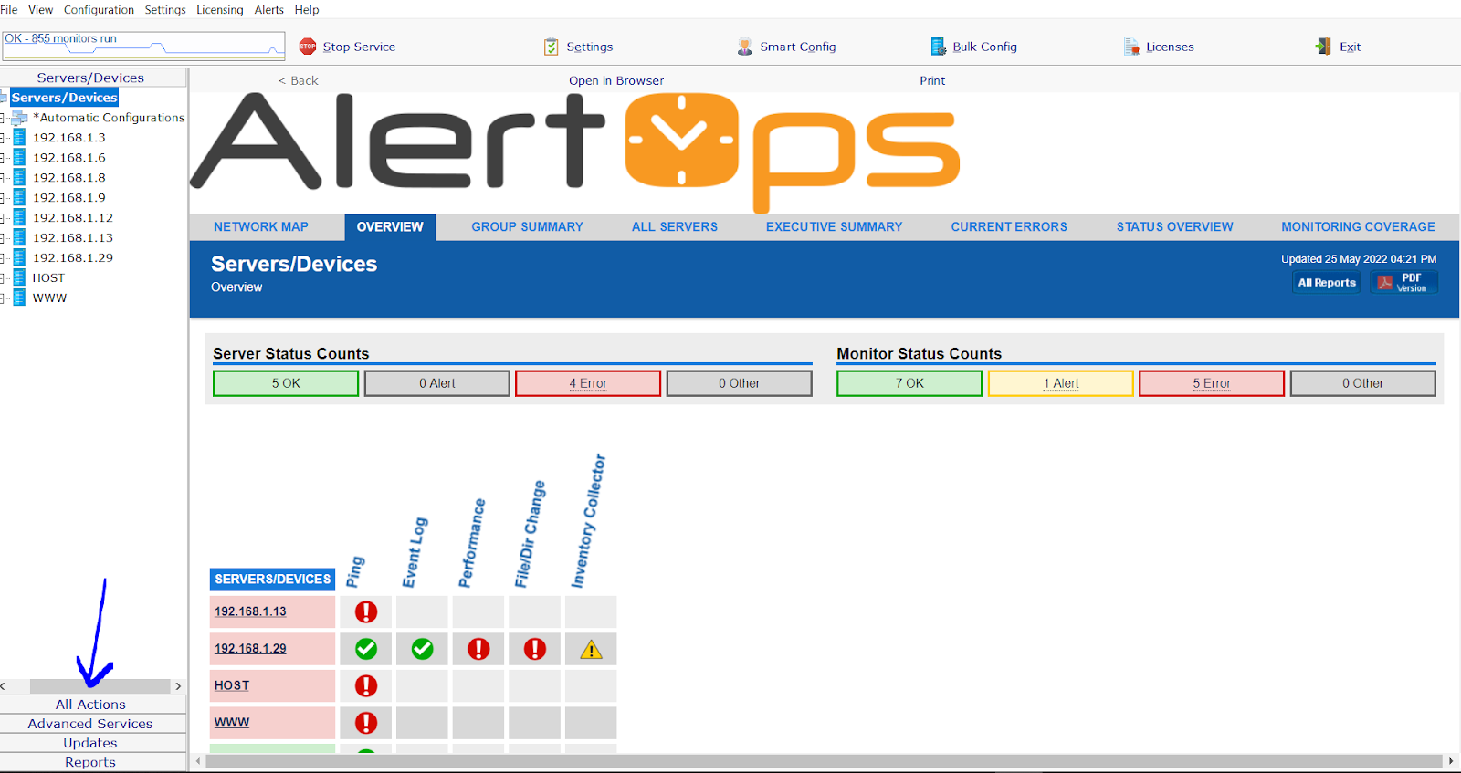 - In your PA Server Monitor Application Console, in the left navigation pane, select 'All Actions'