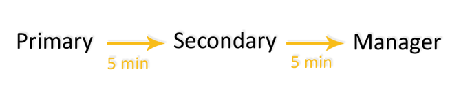 Notify users at 5-minute intervals before escalating to the next member. Notifications will be delivered according to user-preferred contact methods which are set up in a user's profile.