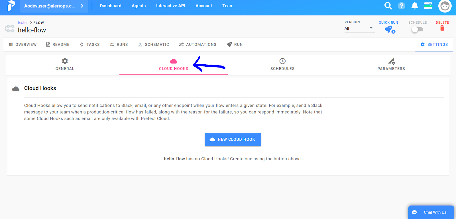 - Select 'Cloud Hooks' and select 'New Cloud Hook'
