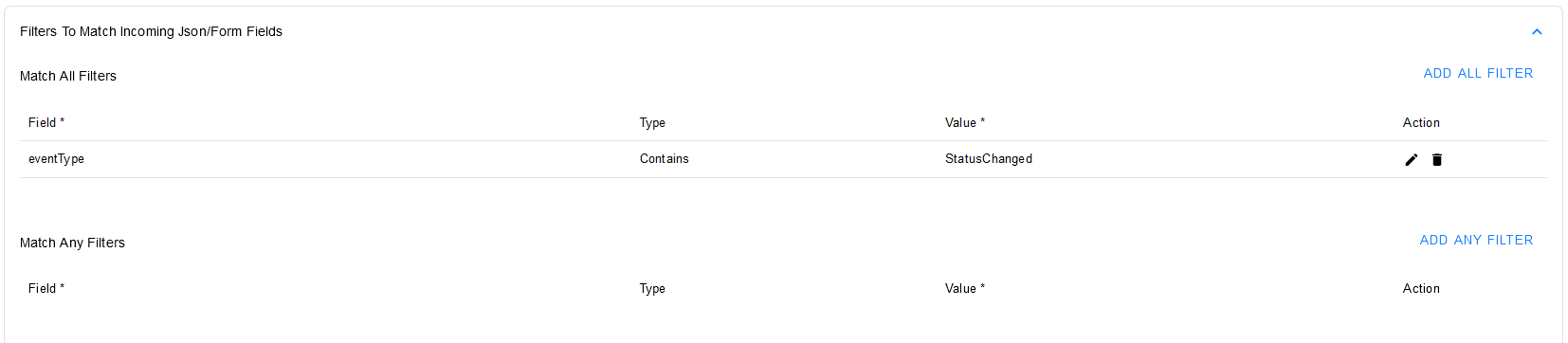 - Under Advanced Settings, there is a section called 'Filters to match Incoming JSON/Form Fields'. Under this there is templated condition that matches 'ALL' conditions (IF NOT ADD THIS). This condition makes sure that AlertOps will simulate open and close conditions for the alert only when the eventType is StatusChanged. (This, and of course, every condition can be customized). There are different payloads for the webhook notifications from Raygun (refer to the link in the References section)