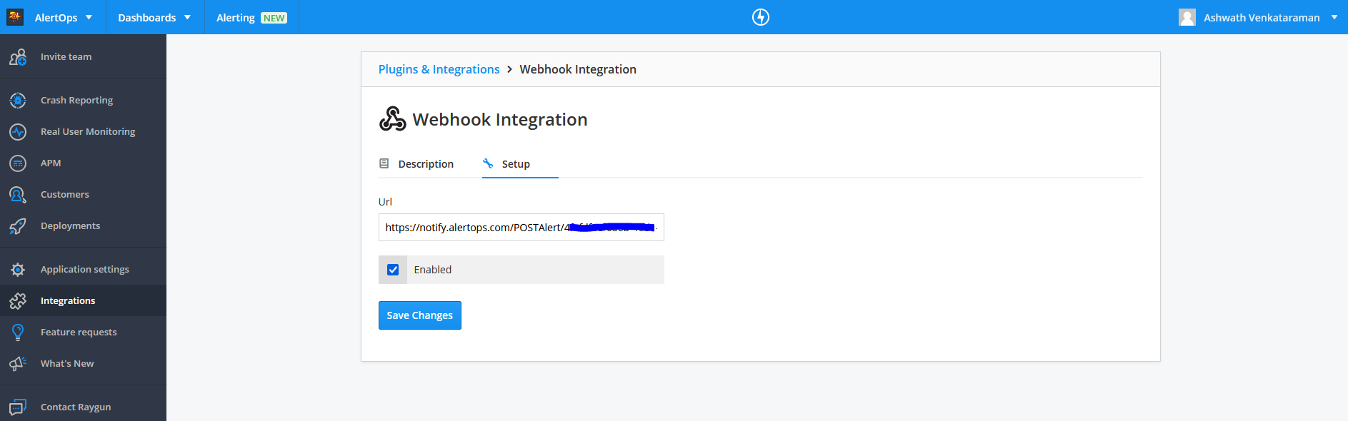 The above scenario and scope for integration is due to the fact that AlertOps has a very flexible and simple API/Webhook configuration feature that can be leveraged with Raygun's reporting and notification capability (in this integration, for error status changes).