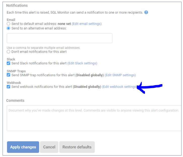 - Make sure that the 'Send webhook messages when alerts are raised' is enabled.