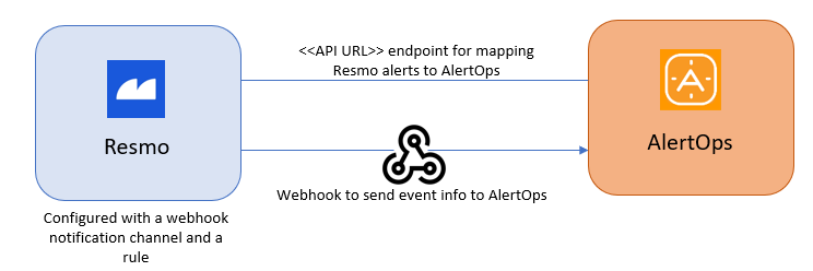 At a high level this is how the flow looks like, you define an API integration in the AlertOps platform by defining settings like Integration Name, Escalation rules, recipient users/groups. Once an integration is defined, a unique API URL is generated. This acts as webhook or the gateway through which notifications from Resmo reach AlertOps and thus an incident/alert is created correspondingly. The API can be defined with various settings like URL mappings, filters, escalations etc. as required. Resmo has to be defined with a webhook notification channel, and associated with a rule.