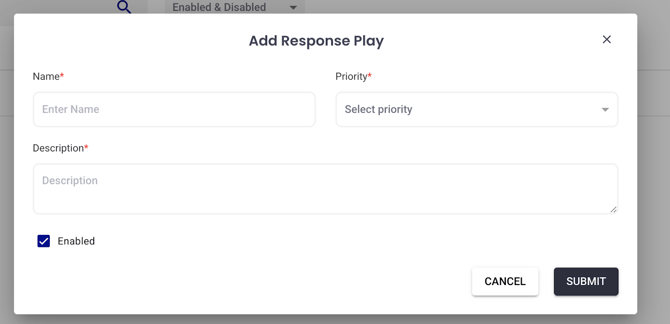 - Name the Response Play, provide a description, and Priority. The priority of the Response Play will determine Notification Overrides. (If DND / Critical Alert Override is enabled within the user’s mobile application – as long as the Response Play priority is High or Critical it will override custom sound profiles)