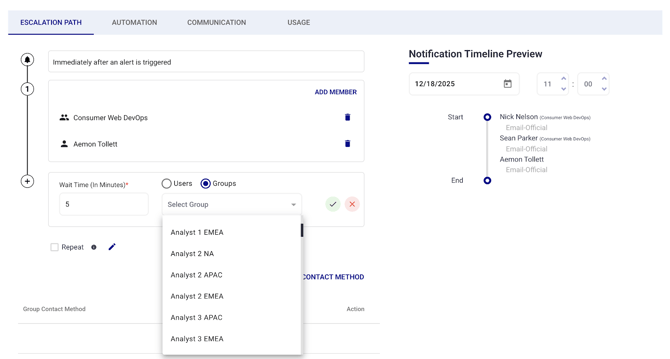 - Tiered Notifications – Add multiple tiers with wait times between each.