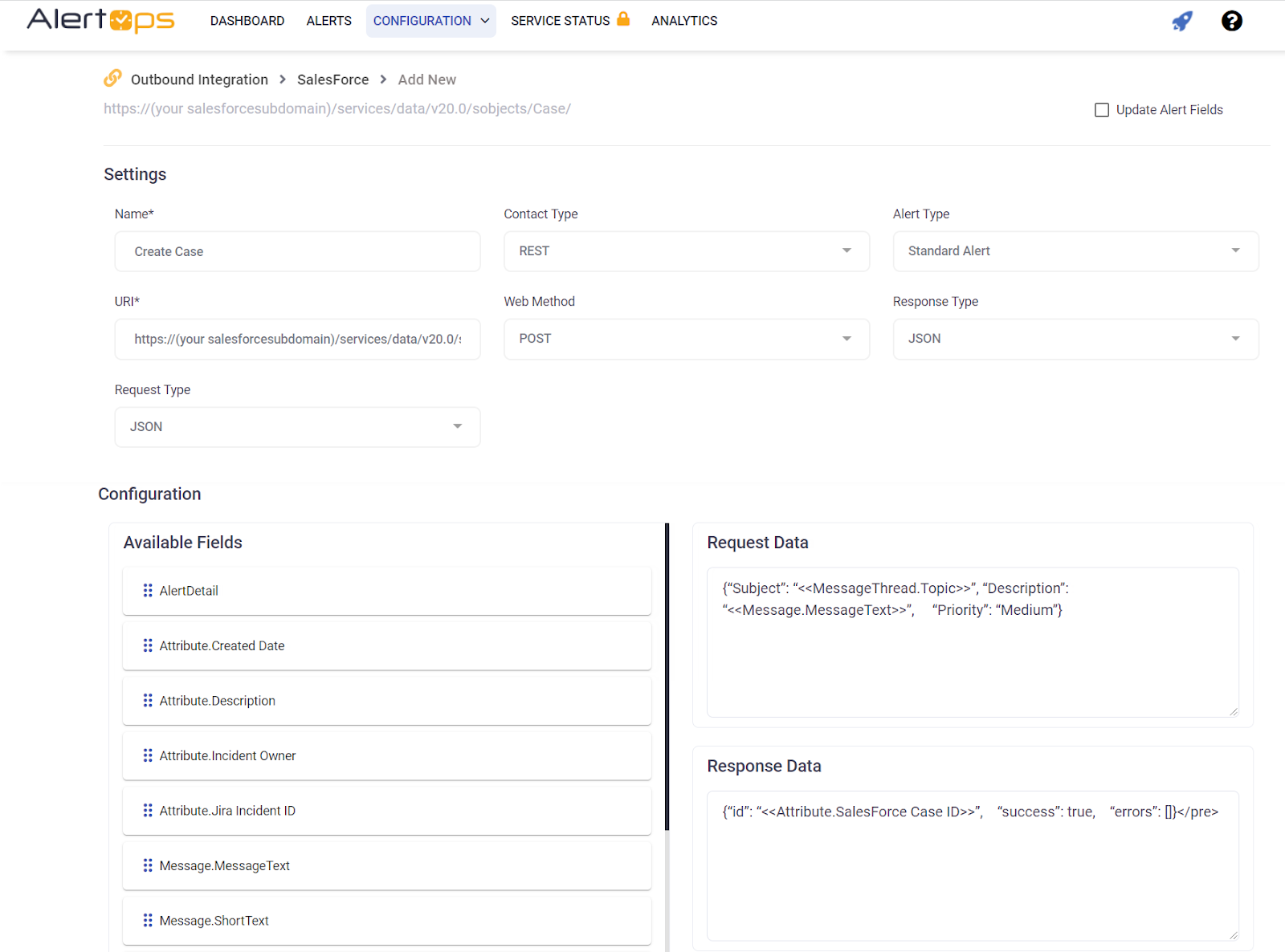 Response Action = Check Update Alert Fields