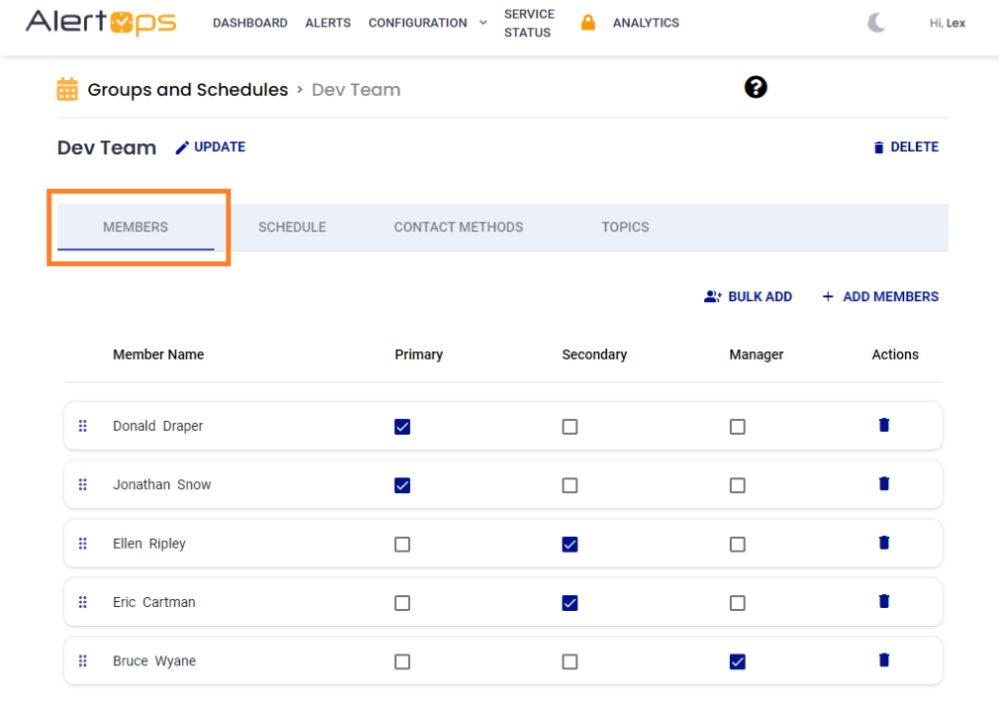 If your group does not have any active shifts, the default member sequence will determine notification behavior. This means primaries will be notified first, followed by secondaries, then managers. However, if you have multiple group members of the same role, the order in which the members are listed will determine notification order.