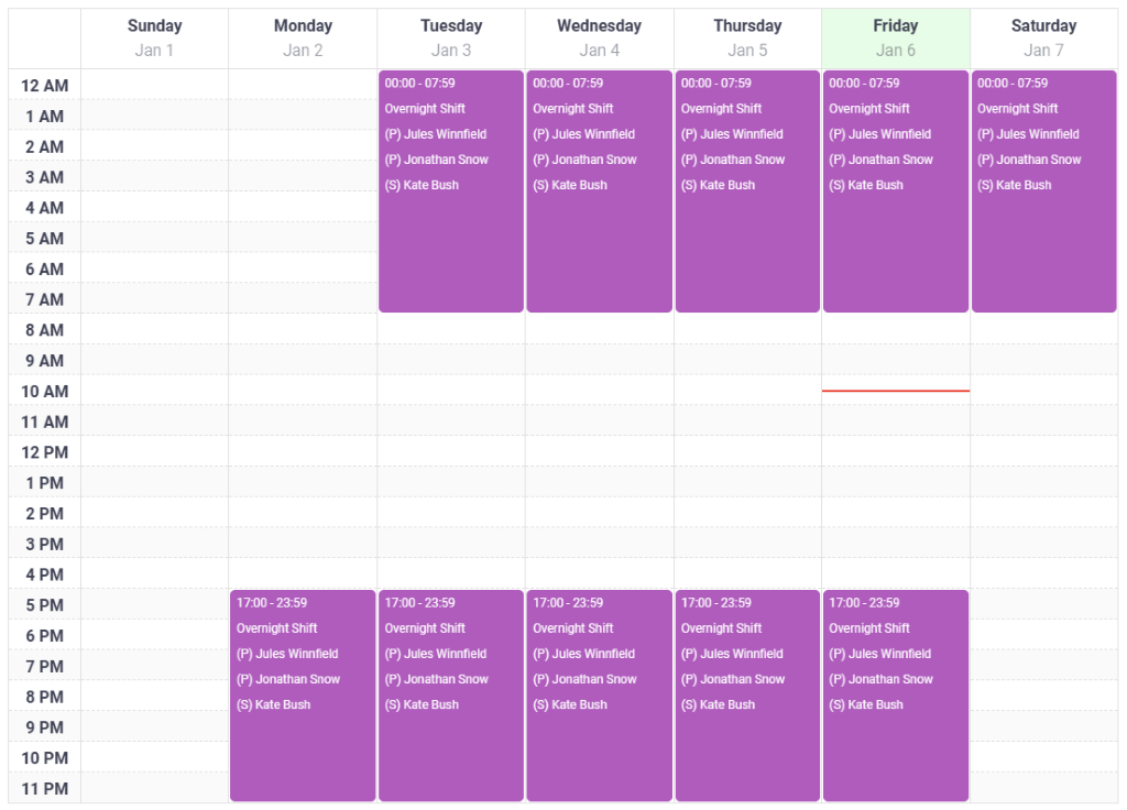 The set up for this shift is similar to the previous example. The key difference happens when we put users into the shift below: