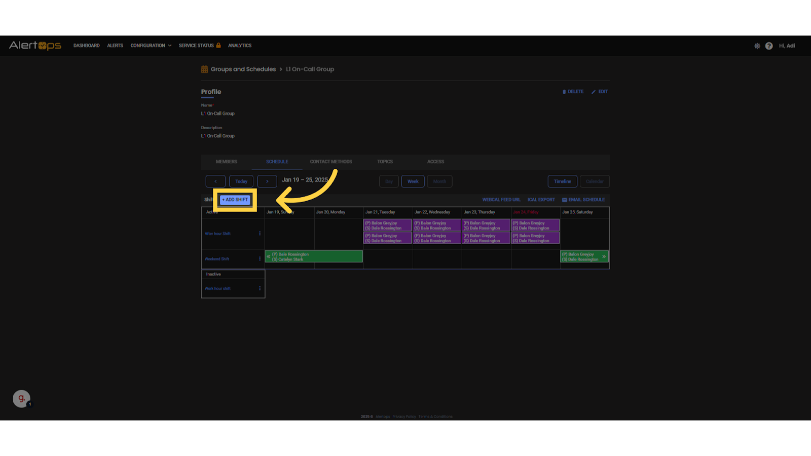 When a group does not have any set shifts in the schedule, escalations are based on user roles as well as the order of members as they are arranged in the members tab.