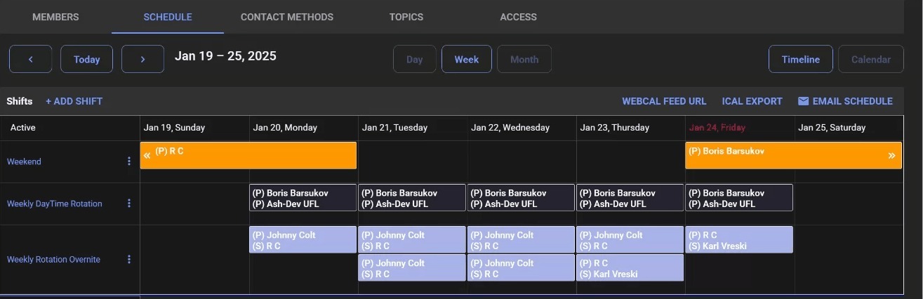A Schedule is comprised of configurable Shifts that give managers control over who is on-call for notifications. In other words, schedule define which team member gets alerted at any given time.