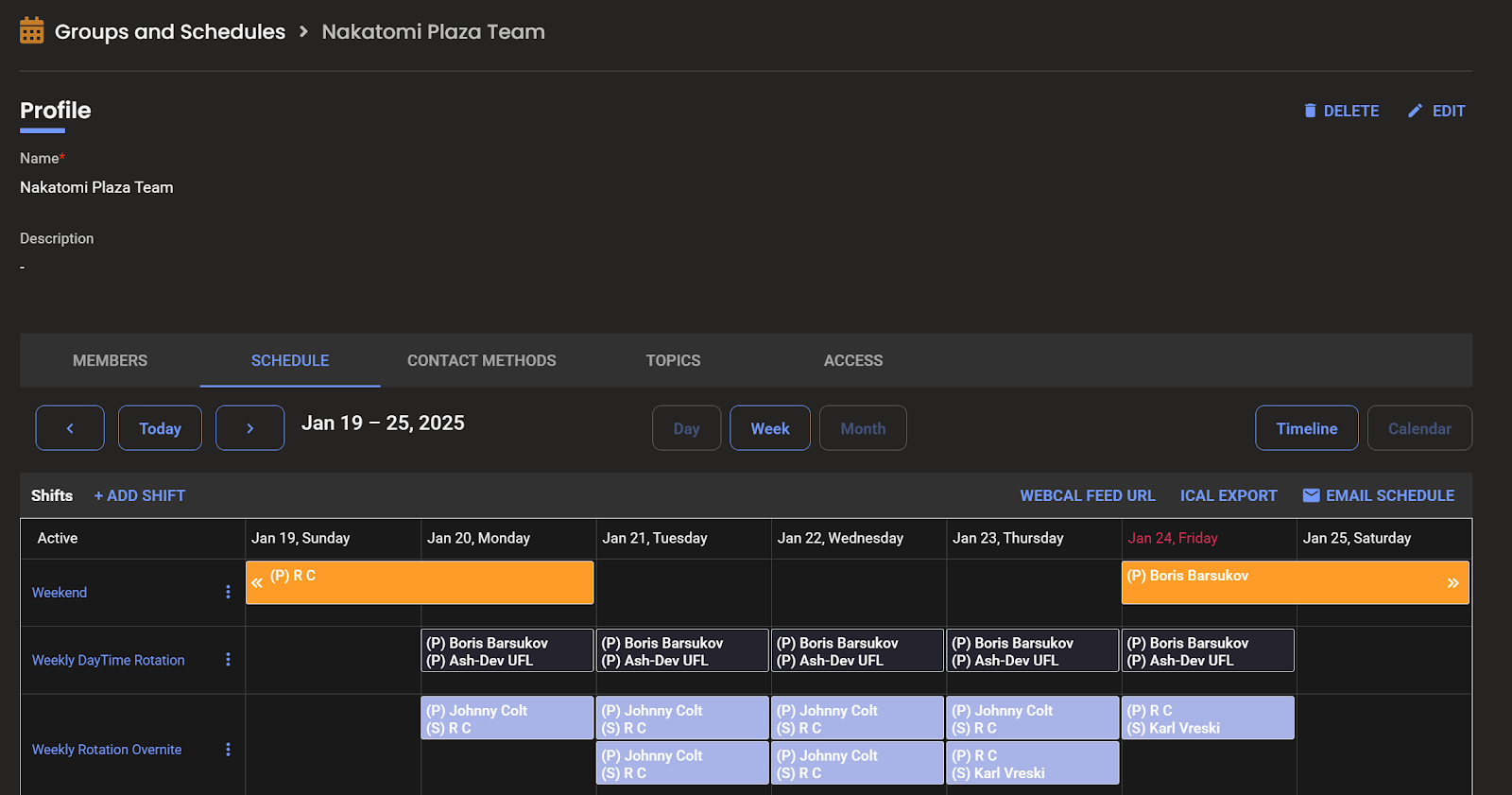 Note: In order to delete a user from a group, you must remove them from all shifts first.