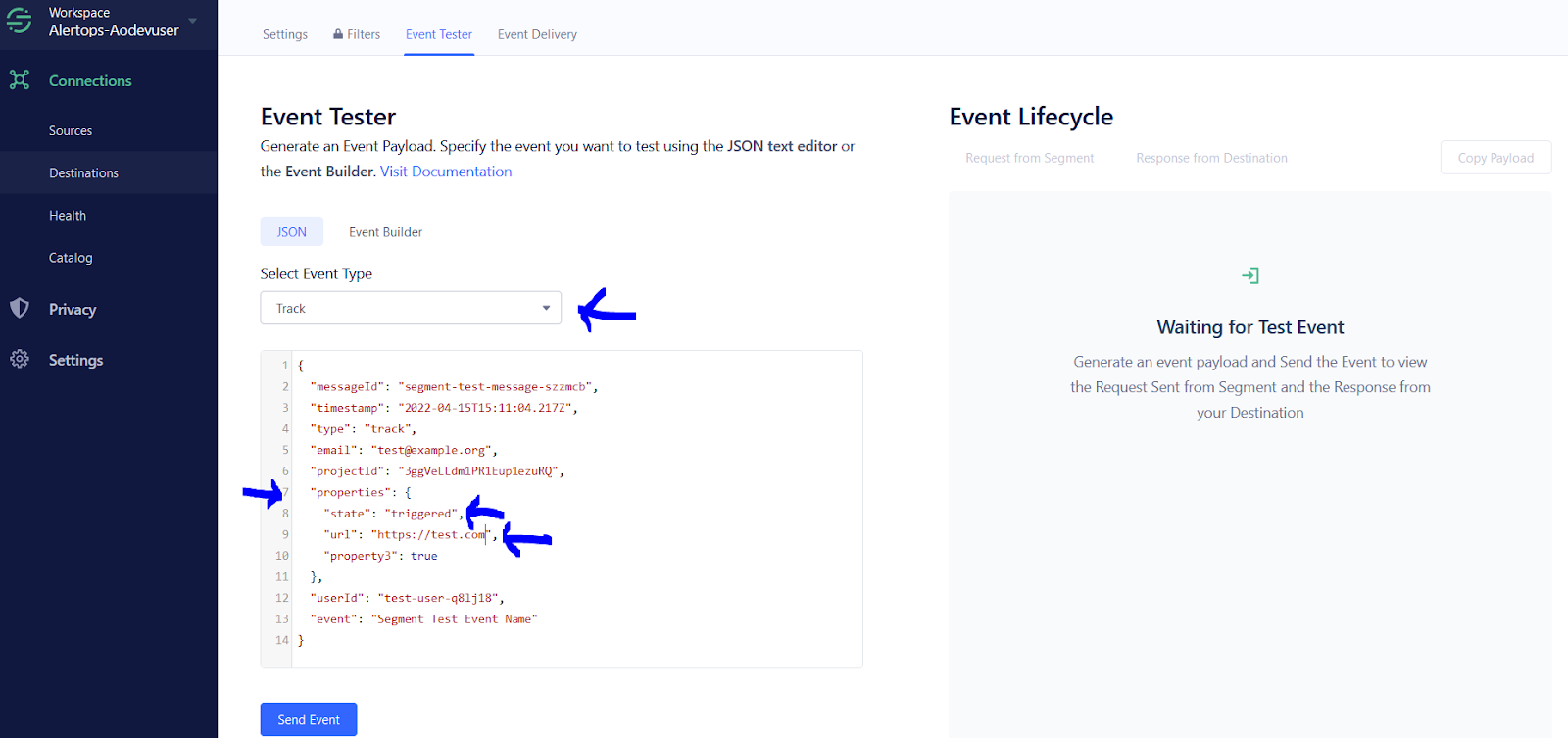 - The templated integration in AlertOps maps event values of the type 'Track' in segment. You can change the event type as you want, but make sure to map the payload accordingly in AlertOps as well. For info on AlertOps Custom mapping visit https://help.alertops.com/en/articles/1736353-custom-url-mapping