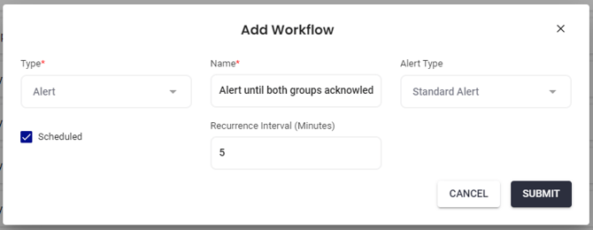When an Alert is sent to multiple teams, the default behavior is to end the delivery when the Alert is assigned to a single user. However, in some cases we need to ensure each team receives the Alert with continued notifications until a user from each team acknowledges. In this example, we will create a Workflow to send additional notifications to the team that has not Acknowledged the Alert.