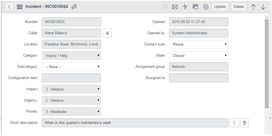 - Add Filter Conditions for Incident State is Resolved or Closed. Click Update.