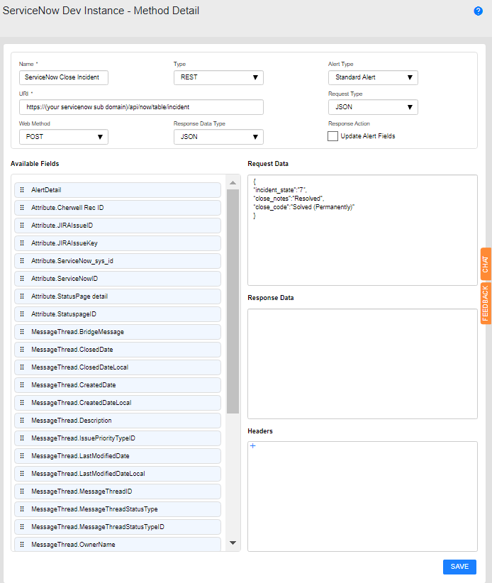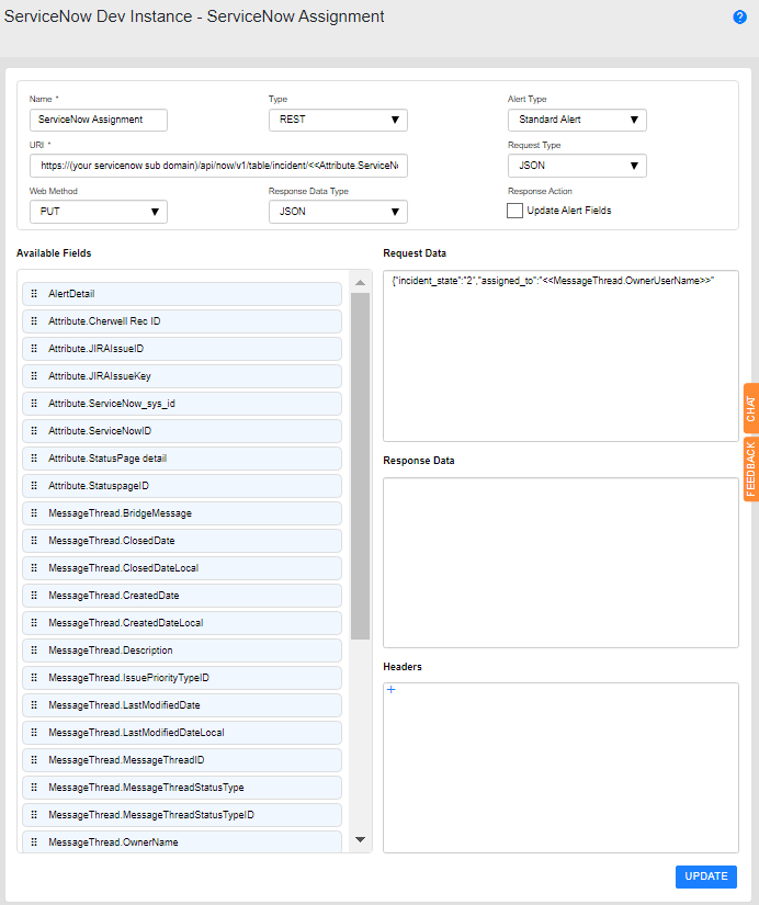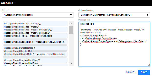 Outbound Action: Service Now – ServiceNow Generic PUT