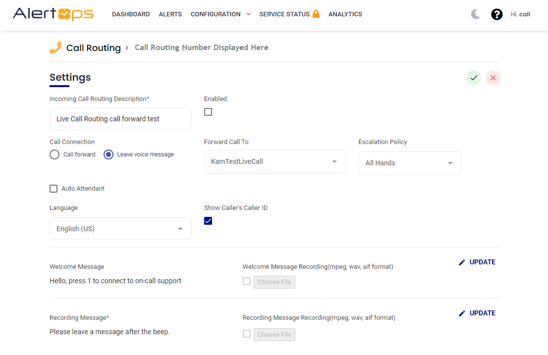 - Enter an Incoming Call Routing Description to name your Call Routing number. This will be used as the Source for Alerts generated by calls.