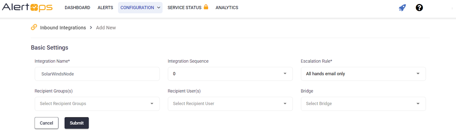 AlertOps will automatically create an incident when a new alert is received from SolarWinds with an IncidentStatus status of “Down.”