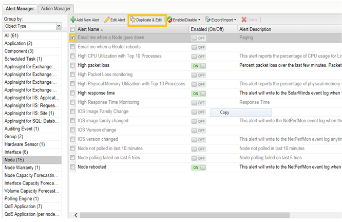 Step 1: Start advanced alert manager program. Select an alert and click Duplicate & Edit (highlighted in the picture)