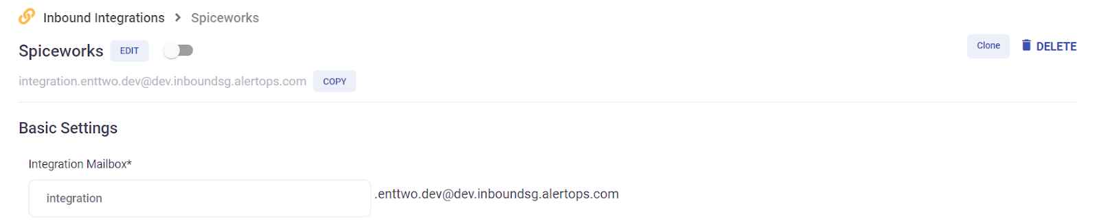 - You should now be on the Email Integration Detail page. Select Spiceworks from the pre-built Integration Templates