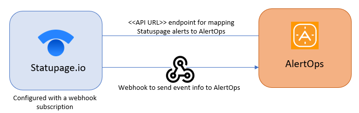 At a high level this is how the flow looks like, you define an API integration in the AlertOps platform by defining settings like Integration Name, Escalation rules, recipient users/groups. Once an integration is defined, a unique API URL is generated. This acts as webhook or the gateway through which notifications from Statuspage reach AlertOps and thus an incident/alert is created correspondingly. The API can be defined with various settings like URL mappings, filters, escalations etc. as required. Statuspage has to be setup with a Webhook Subscription.