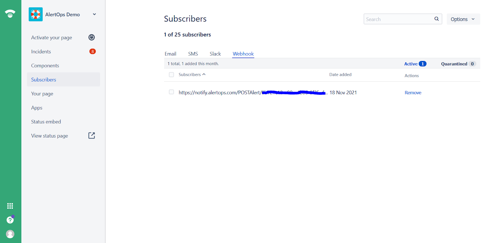 Thats it! You have configured a Webhook Subscription. Any Statuspage alert would now be sent to AlertOps for incident management.