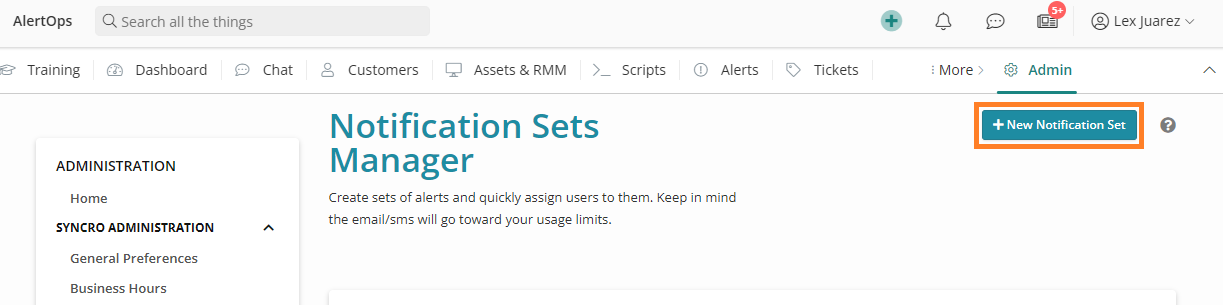 - Click the +New Notification Set button.