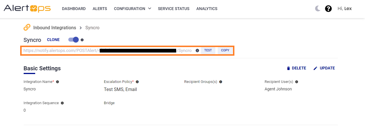 - Copy the integration URL to use in the Syncro configuration.