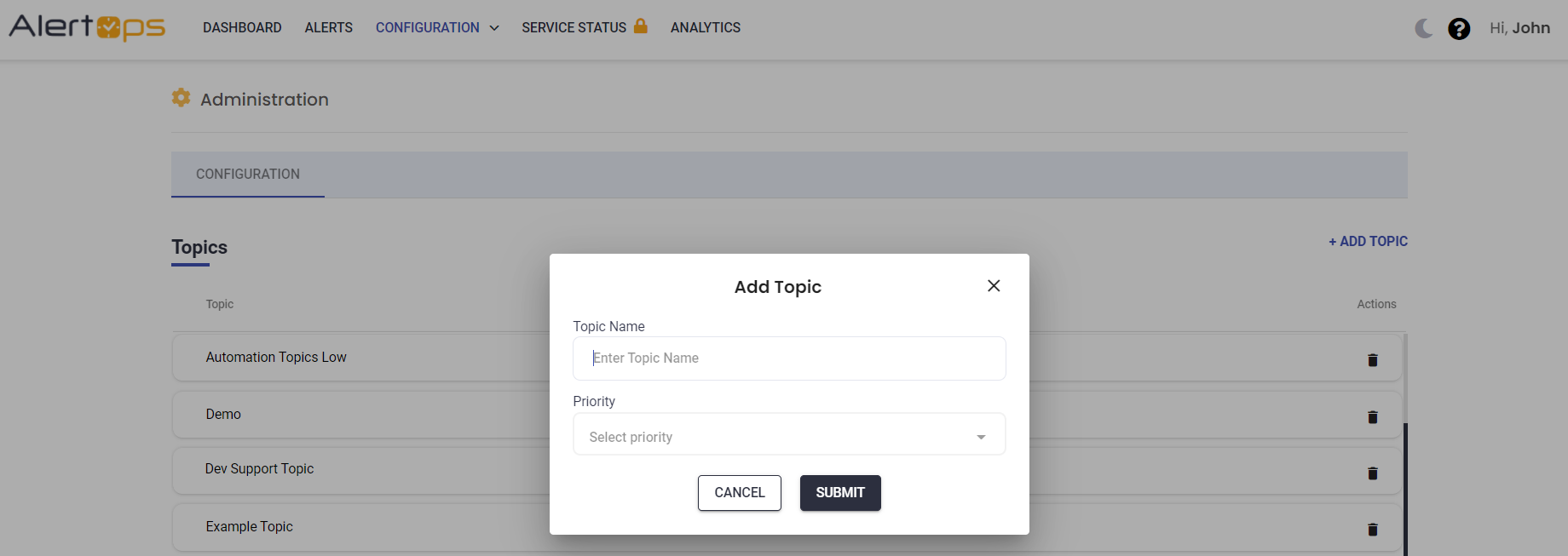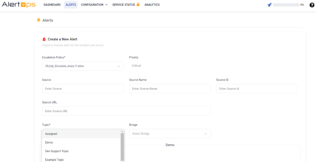 - Select Priority using the dropdown menu. Use different Topics for each Priority/SLA